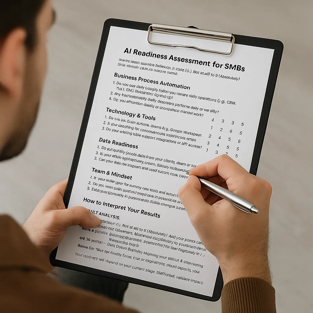 An AI-Readiness Assessment is a structured evaluation that helps a business understand how prepared it is to implement artificial intelligence effectively. It identifies current strengths, weaknesses, and opportunities across your operations, tech stack, and team.